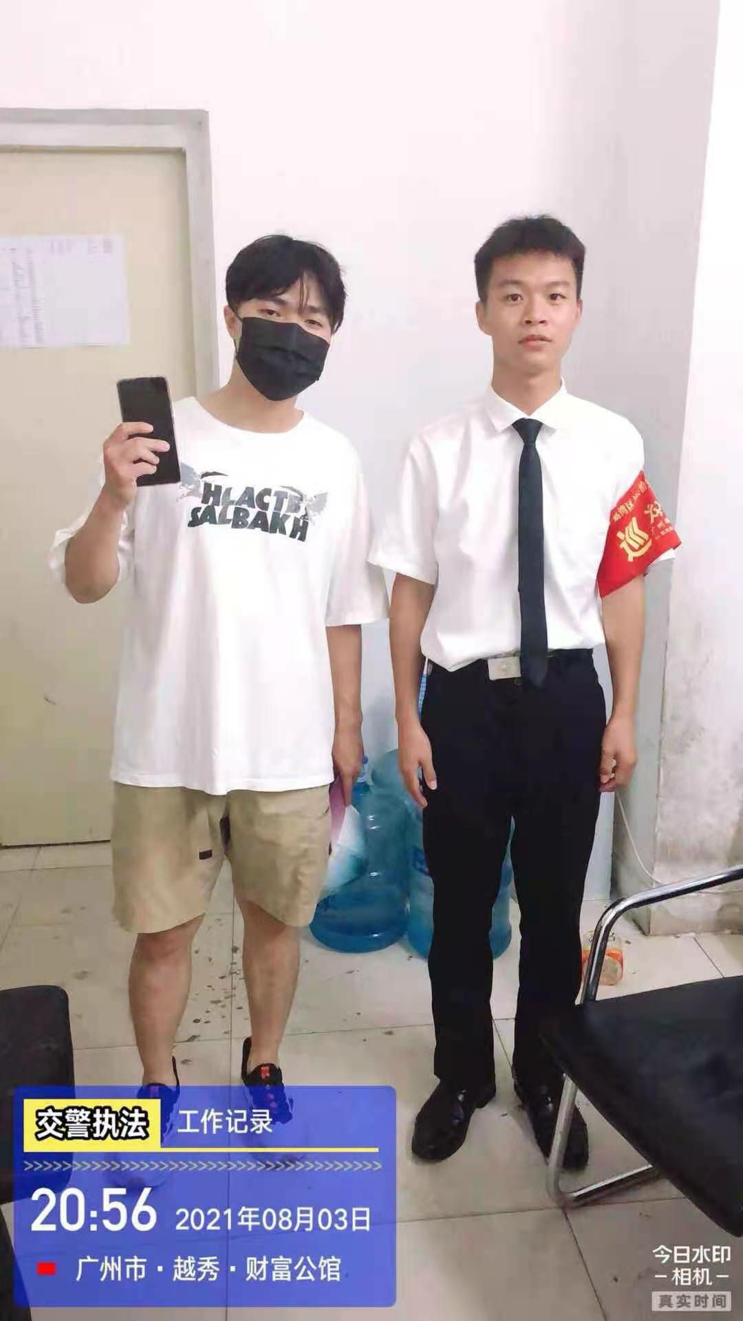 2021年8月3日,吉林刘洋运动健康管理有限公司驻西村悦汇城保安员林伟强像往常一样准备交接岗,当走至负一西南门门口的时候发现地上有一部黑色智能手机,林伟强在现场等待失主并上报了当班值班经理,不一会儿失主打电话过来,核实了失主身份后将失物归还。失主十分感动,并现场手写感谢信一封以表谢意。
